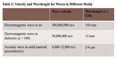 基于壓電效應(yīng)的聲波諧振器由于其緊湊的尺寸而與移動電話應(yīng)用非常有吸引力,因為其緊湊的尺寸與各種介質(zhì)中感興趣頻率的波長有關(guān)(表2。