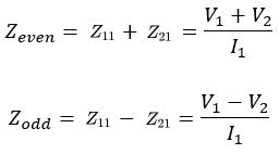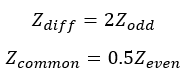 注意,偶數(shù)和奇數(shù)模式傳輸線的阻抗值是根據(jù)Z參數(shù)為一對(duì)耦合的傳輸線定義的: