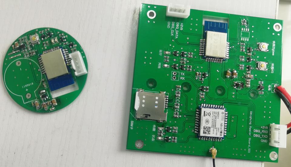 1、本套測重器有4個(gè)半橋式稱重芯片,5個(gè)zigbee模組,1個(gè)4G模組, 4個(gè)紐扣大小鎳氫電池, 1個(gè)A/8號電池大小的鎳氫電池, 若干電路底板組成